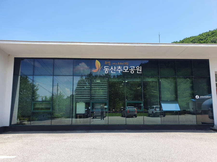 강원도 춘천시 동산추모공원 관리동 통유리벽 야생조류 충돌방지 필름 버드가드 필름 시공 작업